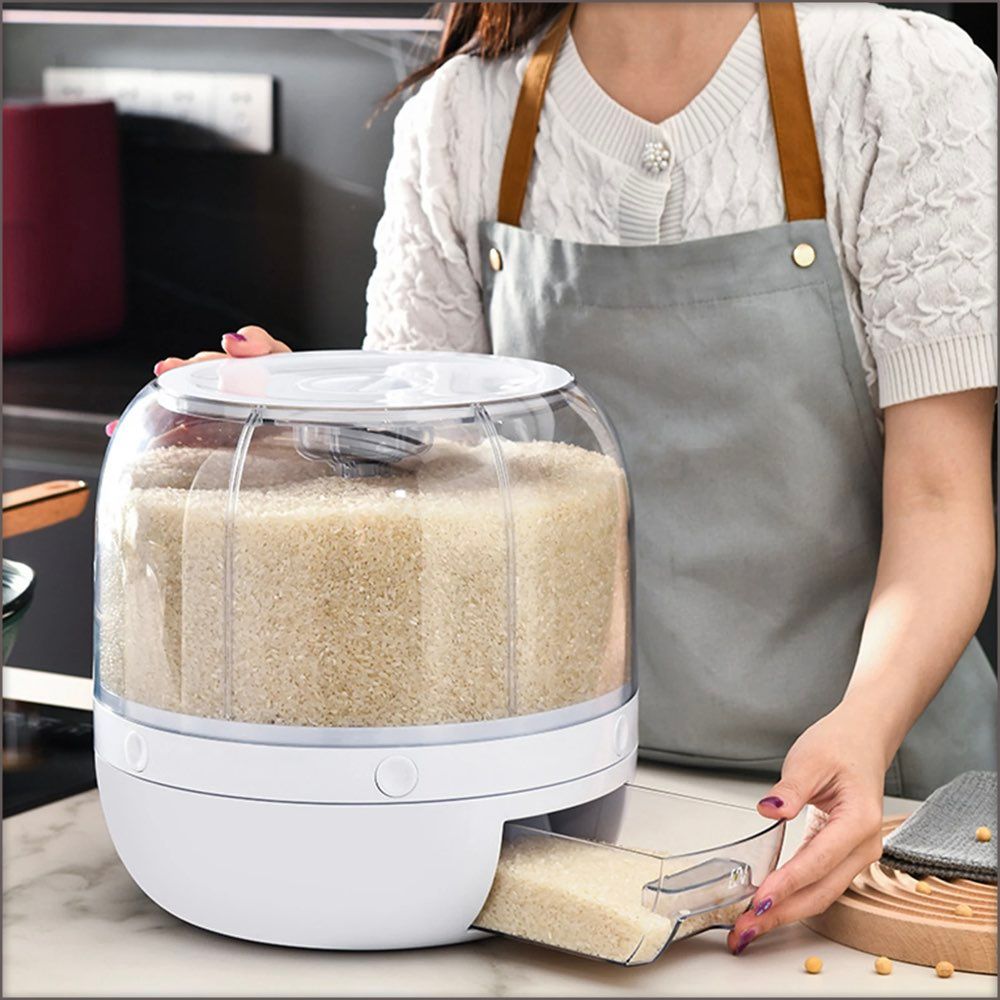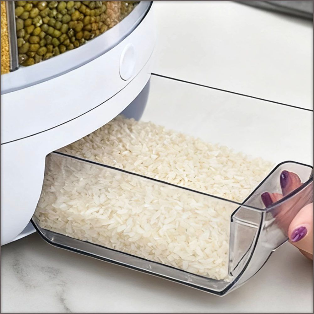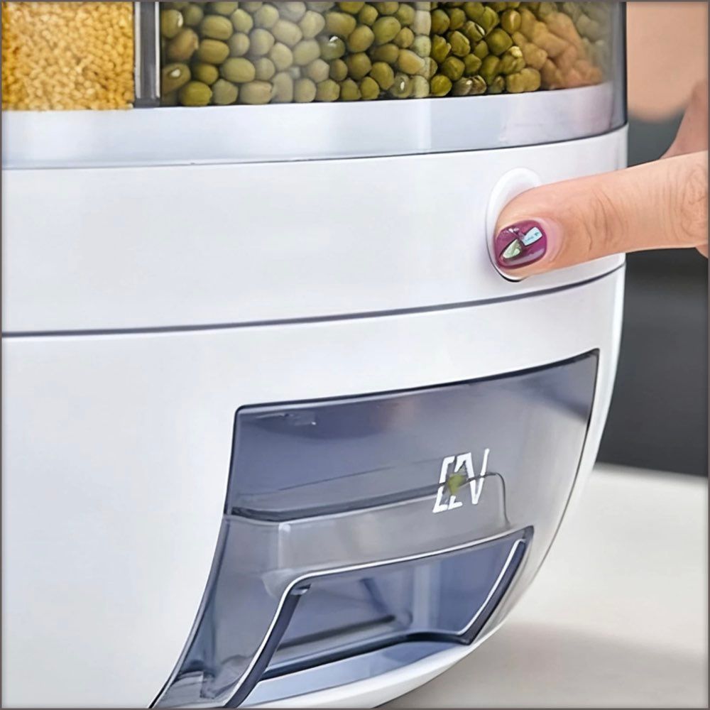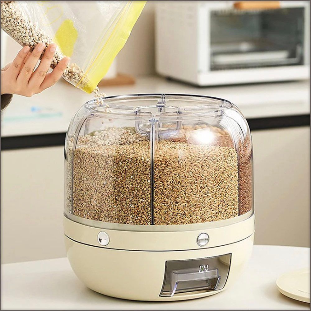 6x Compartment Rotating Dry Cereal or Grain Storage Dispenser Bucket.