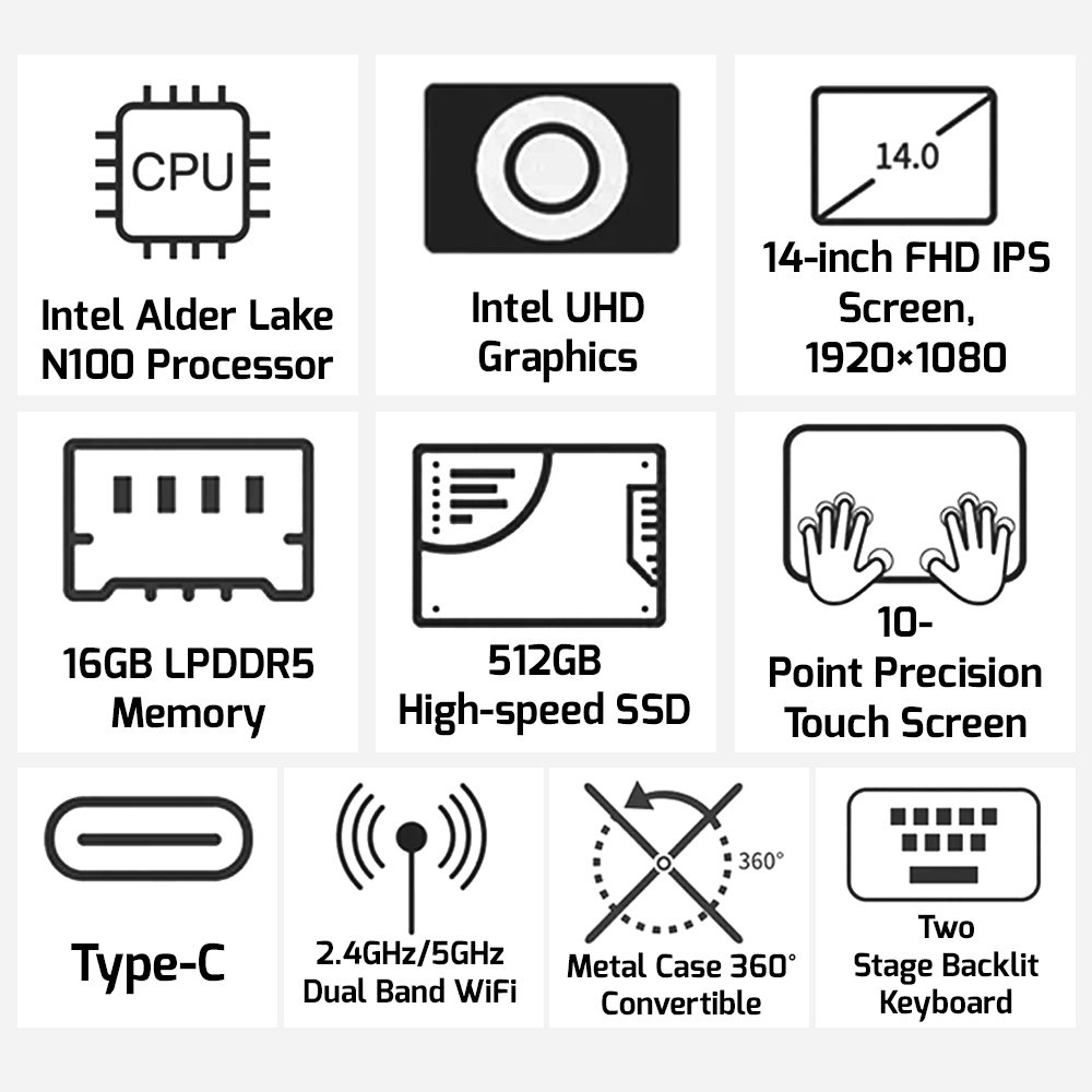 | Processor | Intel 13th GEN TWIN LAKE N150 Processor |