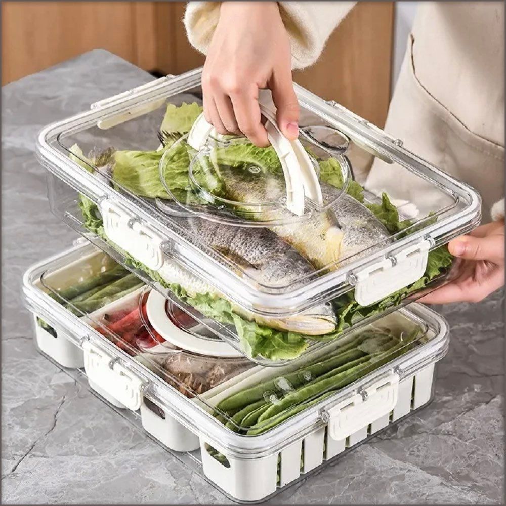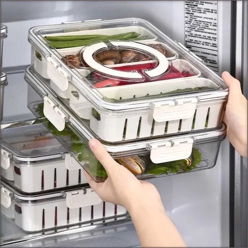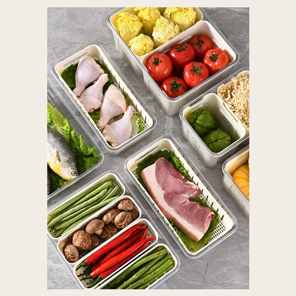 Refrigerator Food Grade Sealed Storage Portable Box. With and without Drain. Off-White Color.