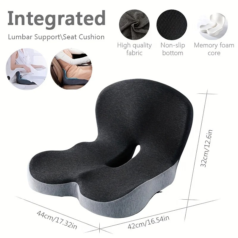 Alleviates upper and middle back pain and tightness, supports a healthy sitting posture, and reduces spinal pressure. The wrap-around design conforms to the lumbar curve, fills the gaps in the lower back, distributes pressure, and prevents soreness and numbness during prolonged sitting. Scientific zoning support increases the coverage area by 1.6 times compared to regular models, correcting sitting posture. Breathable hole design promotes air circulation, keeping the back dry and comfortable for use in all seasons. High-density memory foam filling provides strong support and retains its shape, enhancing comfort. Skin-friendly, breathable fabric that is odorless; the outer cover is removable and machine washable for easy cleaning. Adjustable elastic straps extend up to approximately 90cm, securely attaching to various types of seats without slipping.