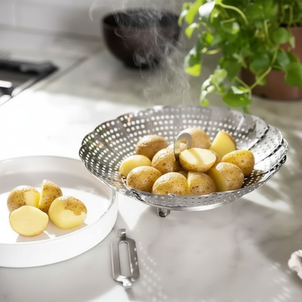 Transform your kitchen into a haven for healthy, flavorful meals with the Stainless Steel Steamer Insert Compatible with most 2–5-liter pots and saucepans, from jinggles.com. Perfect for steaming vegetables, fish, chicken, and dumplings, this versatile steamer is designed to elevate your culinary experience.