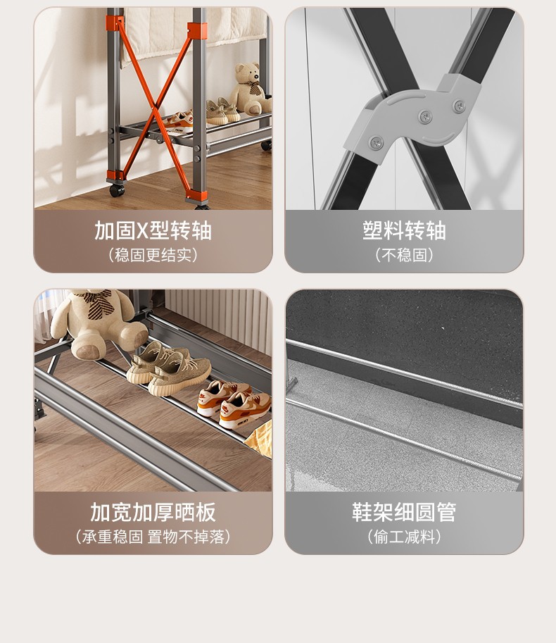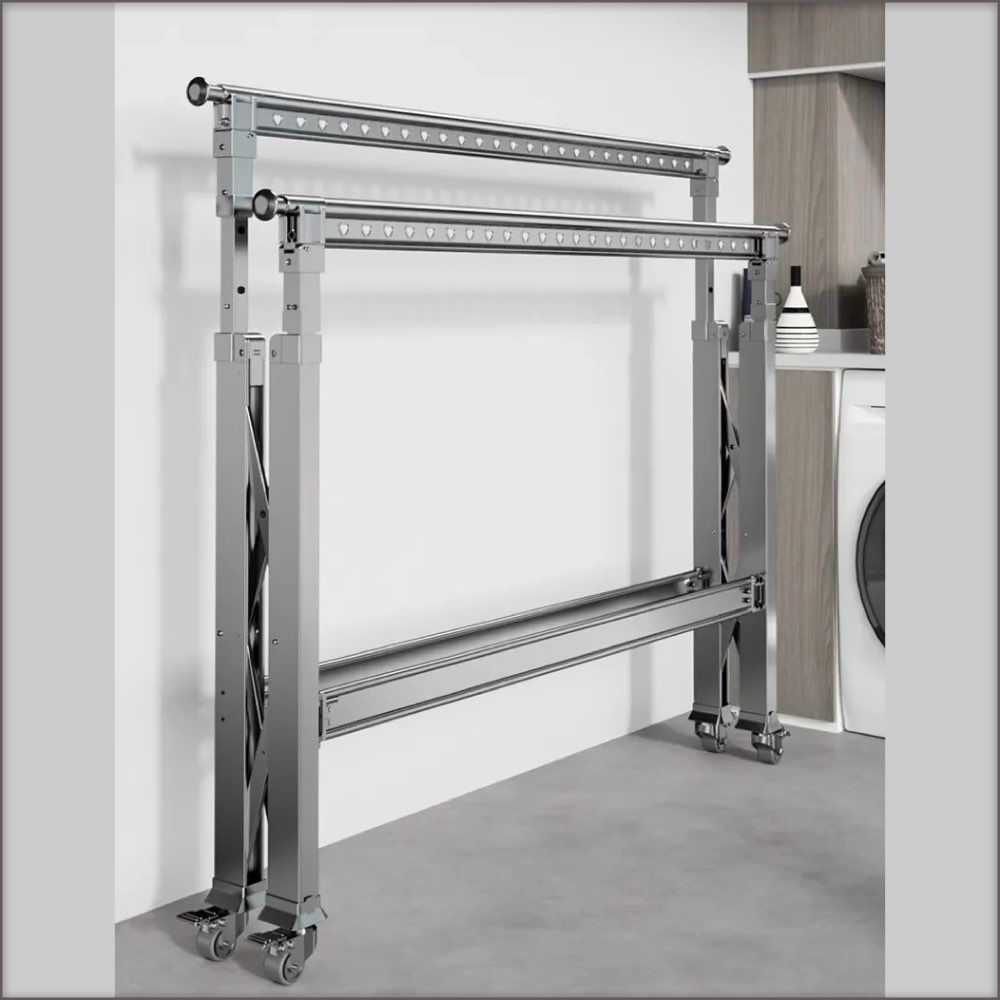 Material: Aluminum alloy + carbon steel, foldable and installation-free with wheels