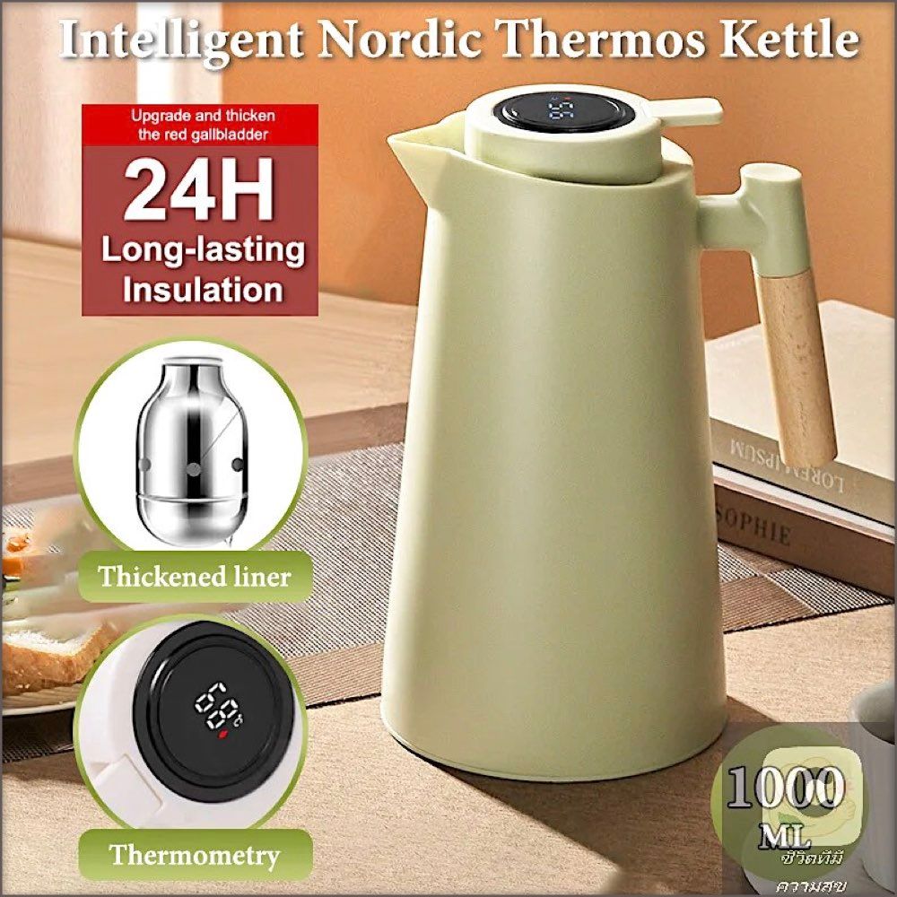 Temperature Display Nordic Glass Liner Thermos Flask. Capacity: 1L.